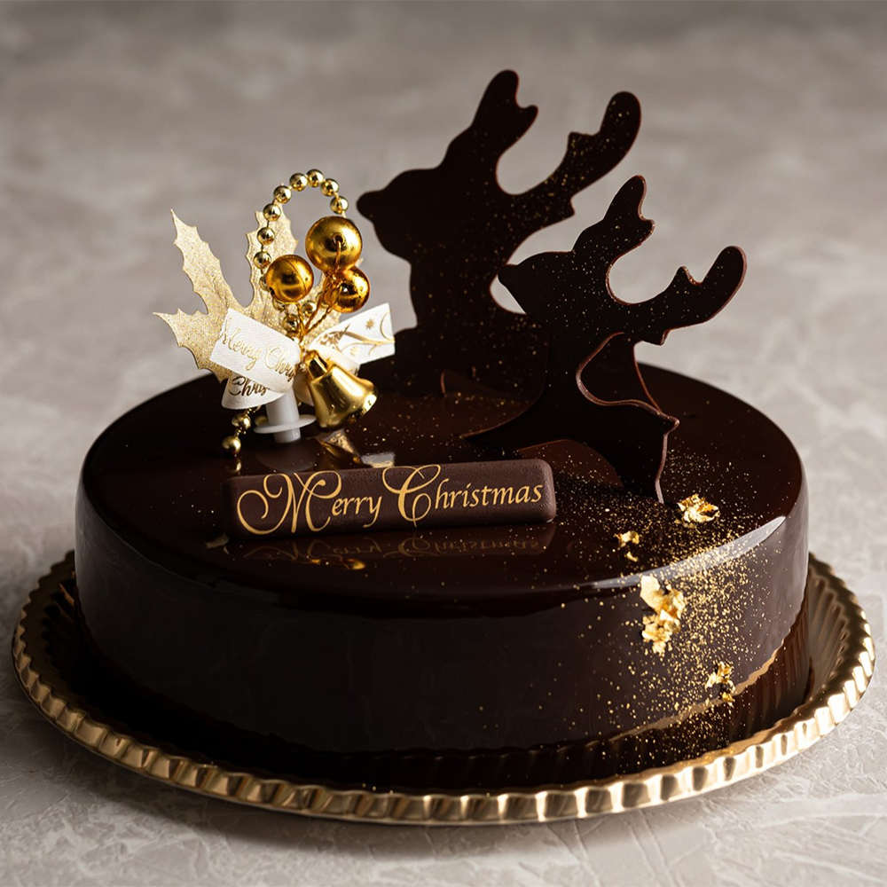 クランチチョコレートのザクザク食感もアクセントとして加わり、チョコレートの魅力を余すことなく堪能できる至高のクリスマスケーキです。