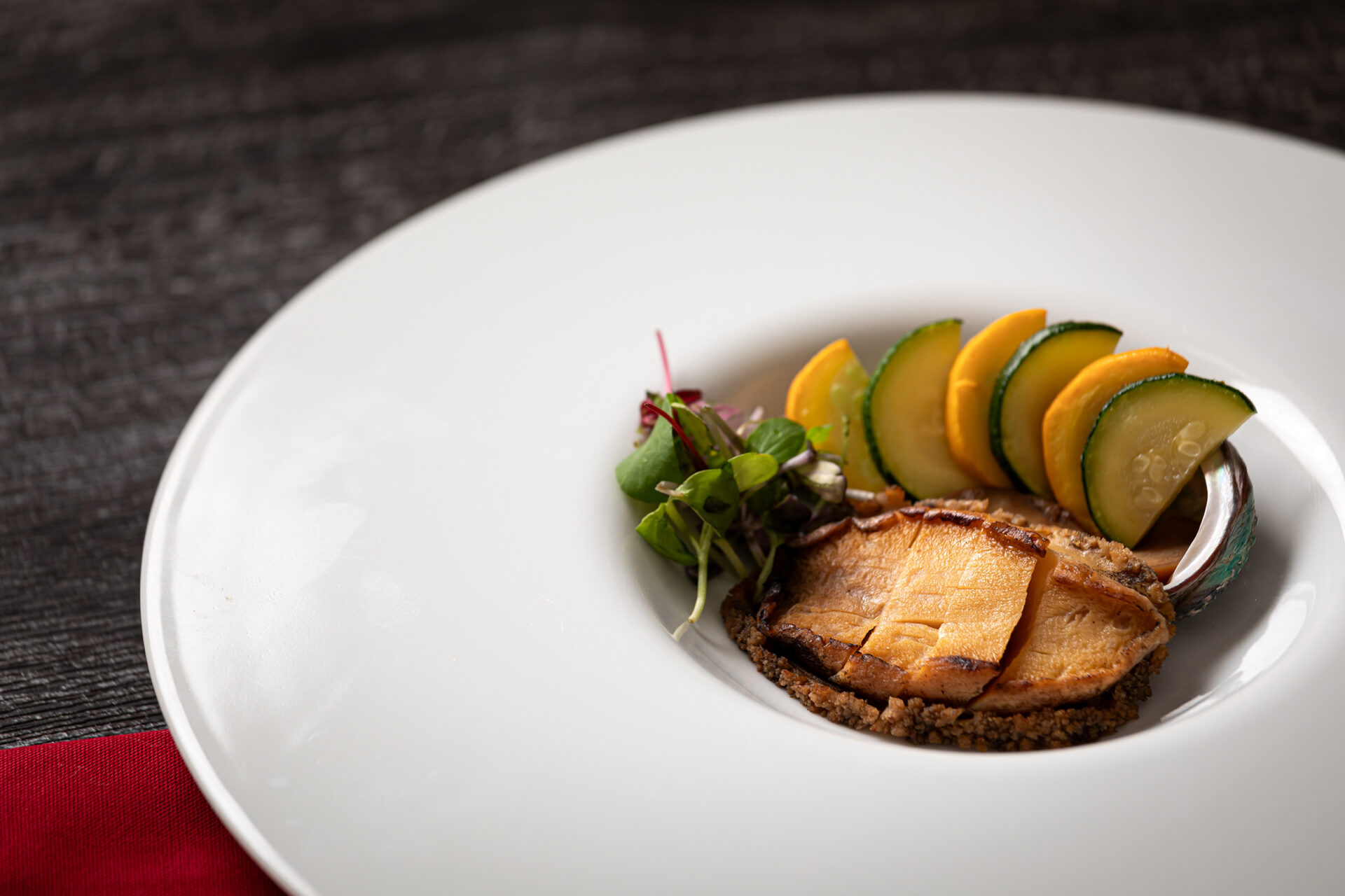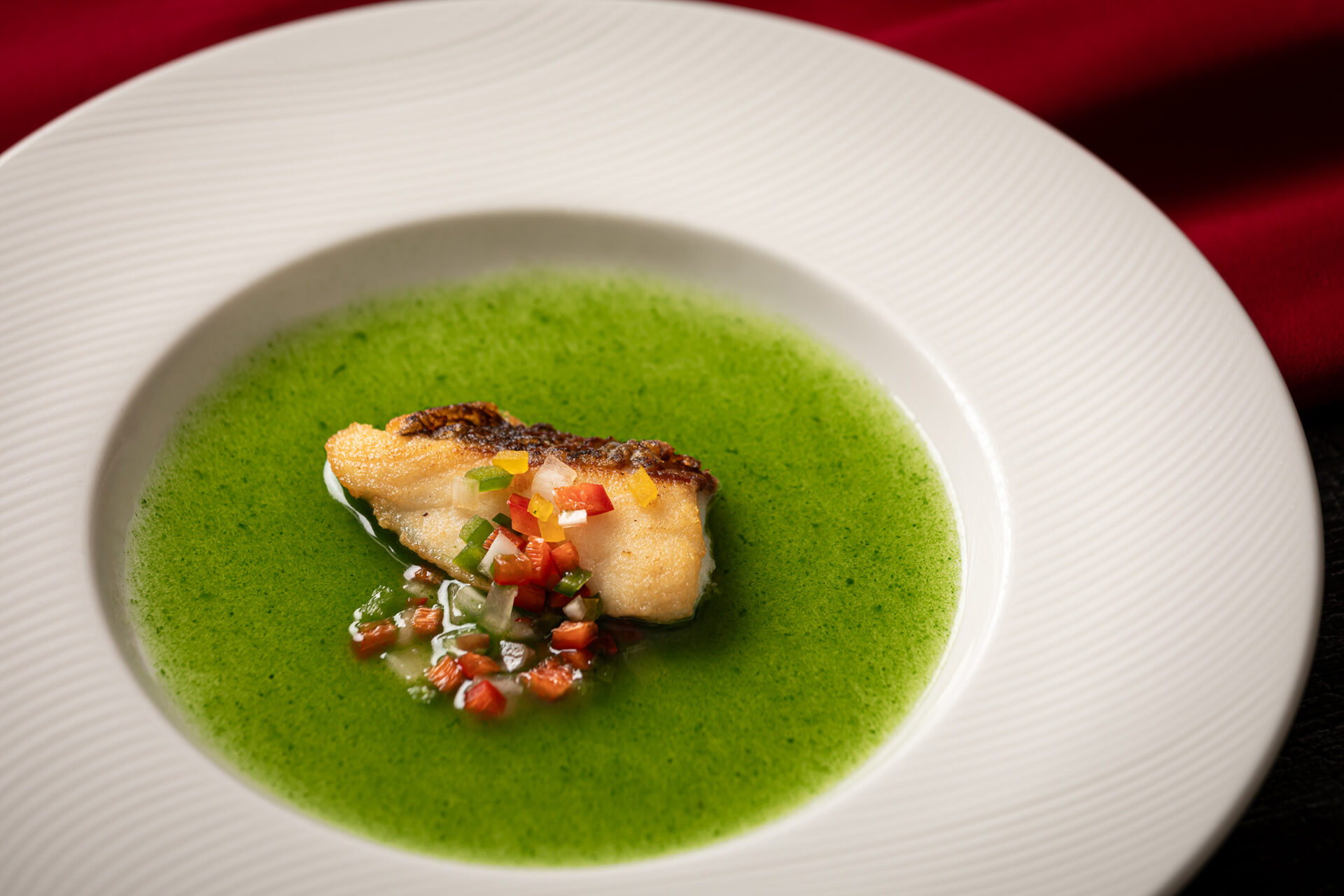 ・九州産旬魚と彩り野菜の翡翠ソースかけ