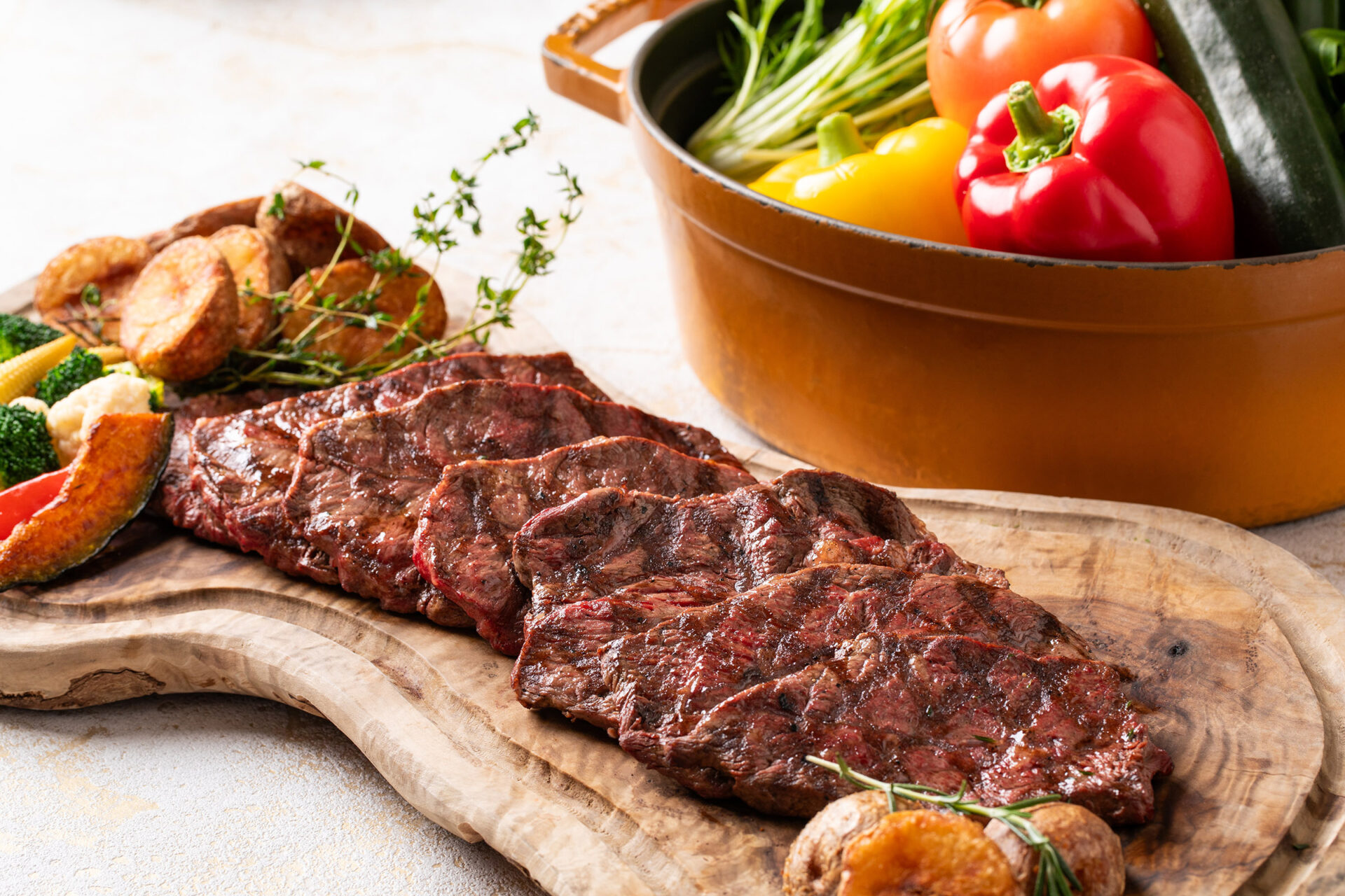 焼きたての鉄板焼きビーフステーキをはじめ、ビールにぴったりのフードやデザートが食べ放題。熊本の恵みを味わうお料理から始まり、夏にはハワイ気分を楽しむリゾート感あふれるお料理など、期間ごとに異なる魅力をご用意しております。
