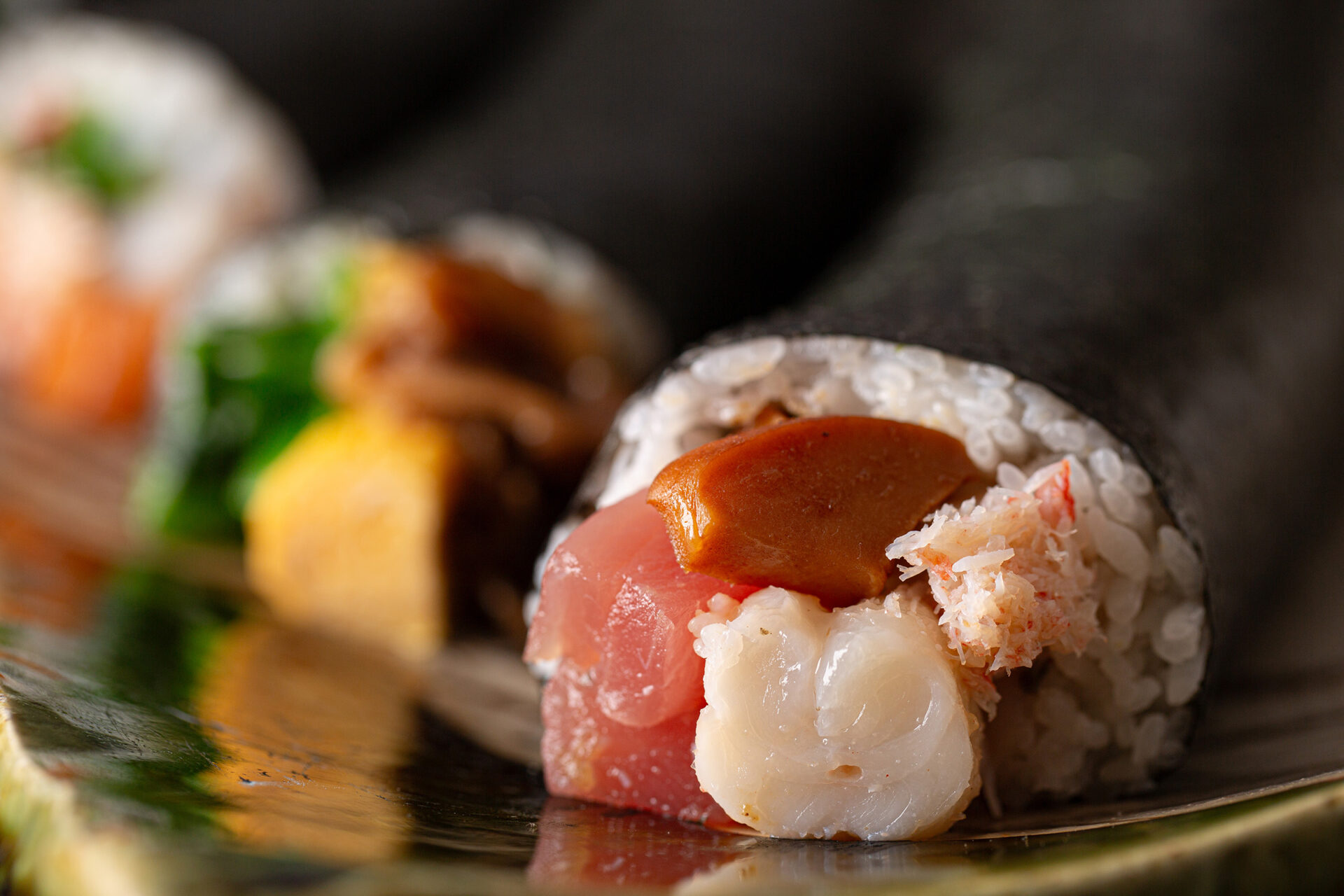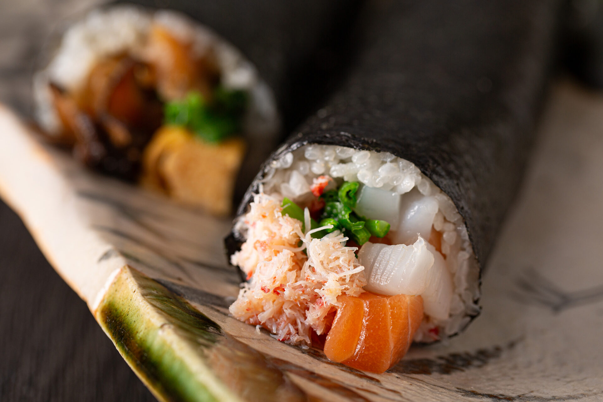 新鮮な海の幸と和牛の旨味を贅沢に詰め込んだ日本料理筑紫野の恵方巻。