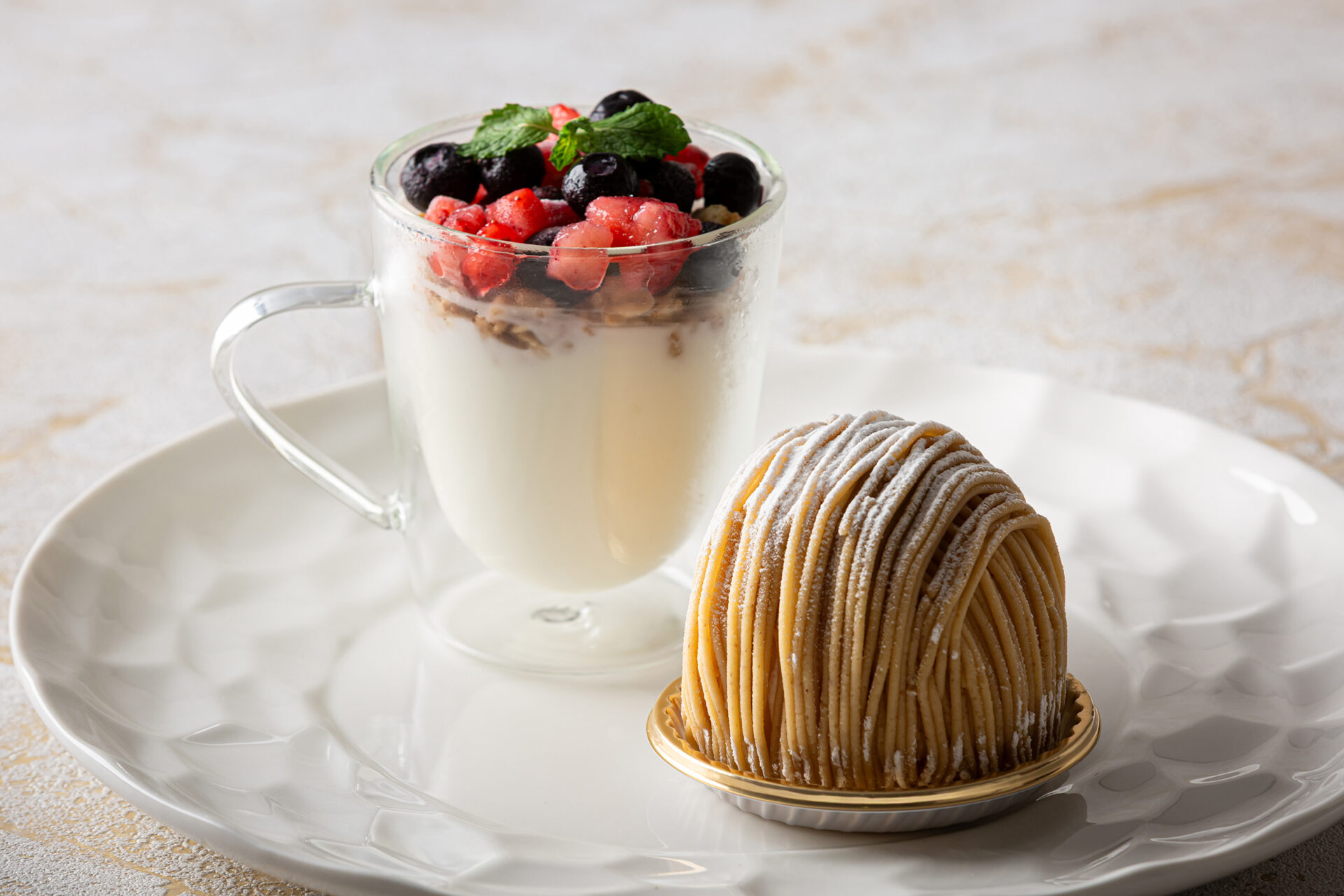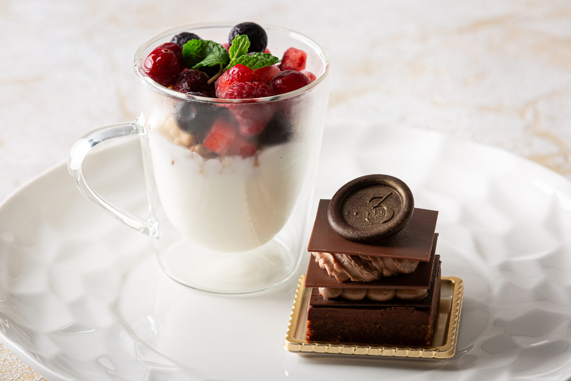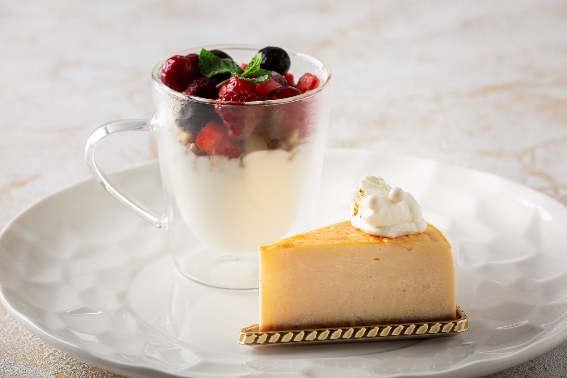 お好きなケーキにヨーグルトグラノーラとドリンクを添えた、 年末年始だけの特別スイーツセット。